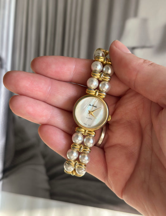 Stunning vintage gold-tone watch Lee Sands with pearls