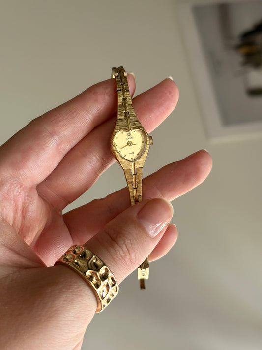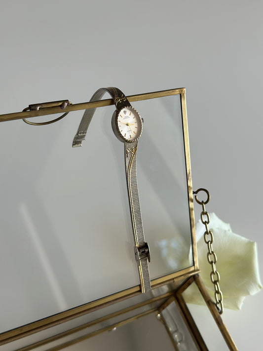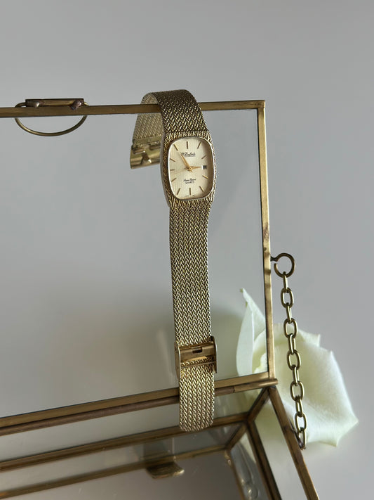 Vintage Lucien Piccard Dufonte watch with gold-tone mesh bracelet