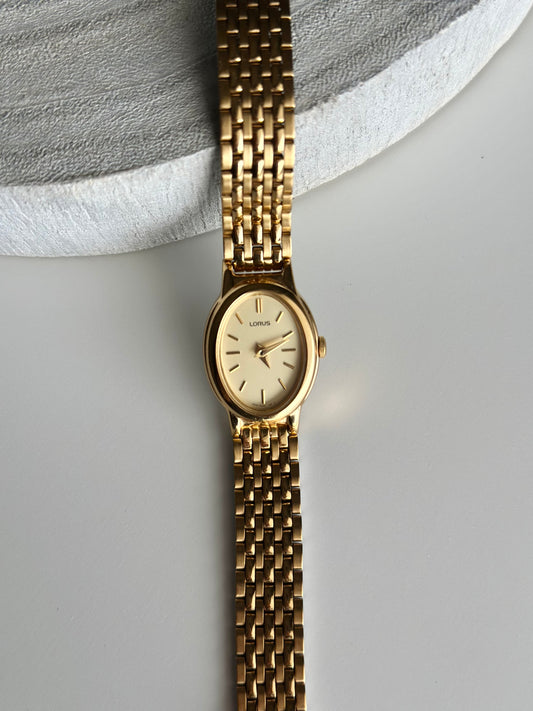 Vintage Lucien Piccard Dufonte watch with gold-tone mesh bracelet