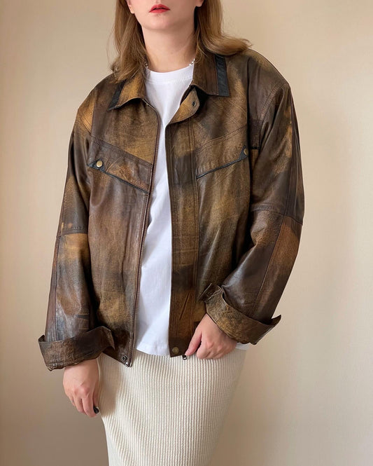 Vintage oversized bomber jacket made of leather effect fabric (90s)