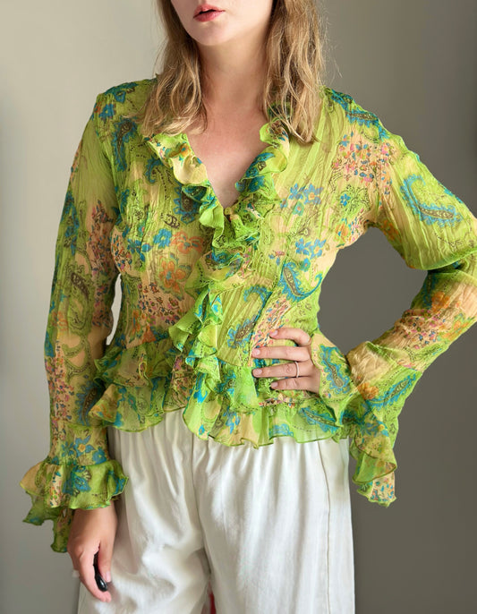 Vintage Y2K romantic blouse in semi-sheer fabric