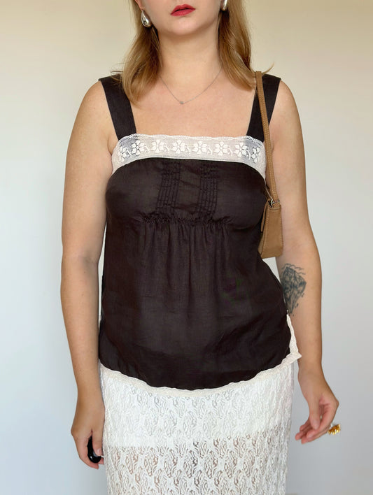 Lovely vintage linen top with beautiful white lace