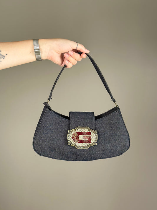 Stunning denim shoulder bag Guess with rhinestones Y2K