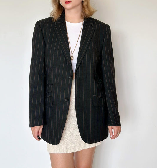 Vintage oversized men's striped wool blazer with amazing bright lining