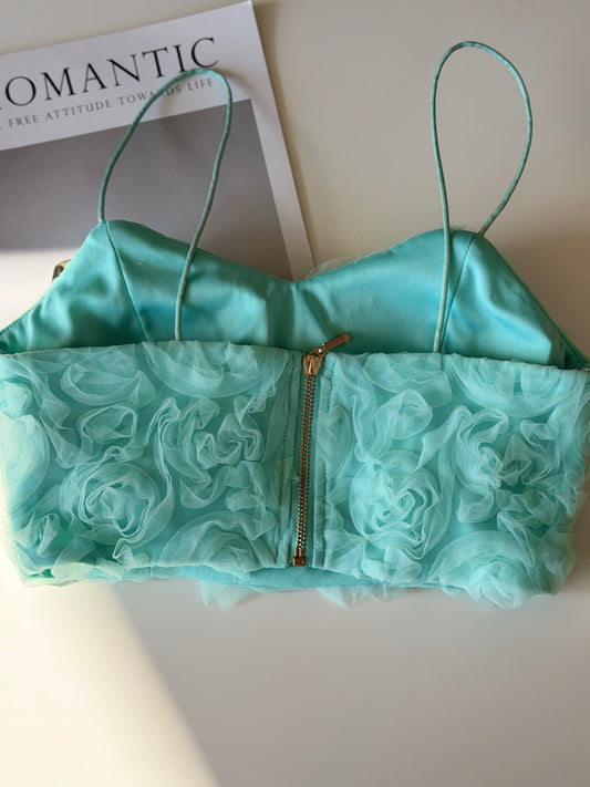 Turquoise bustier top with roses