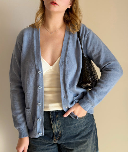 Sold outWool blue cardigan from Woolovers