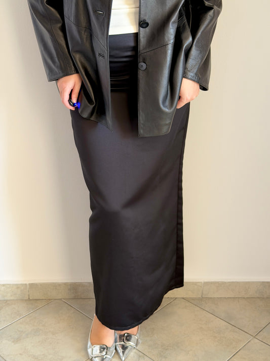 Black maxi satin skirt
