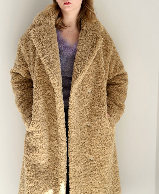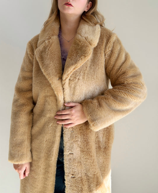 Chic beige faux fur midi coat
