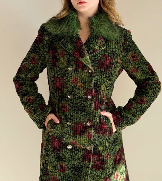Unique vintage corduroy coat with faux fur collar
