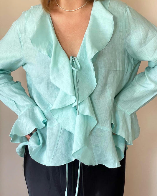 Beautiful vintage linen blouse Marc Aurel with ruffles