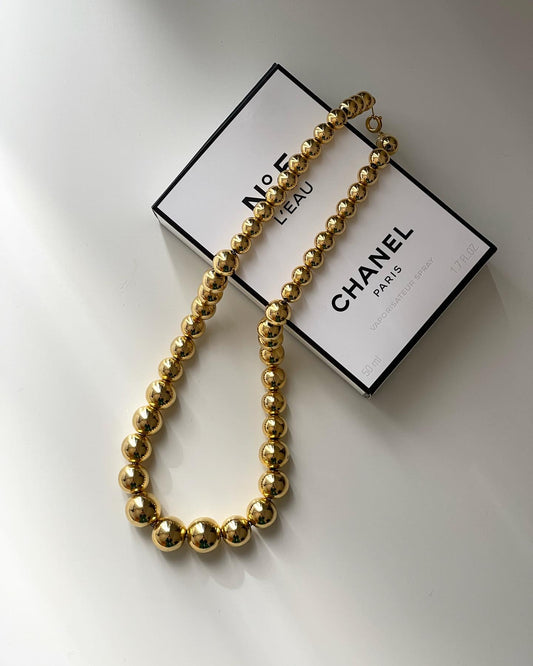 Lovely vintage gold-tone necklace in a simple beaded design (metal+plastic)