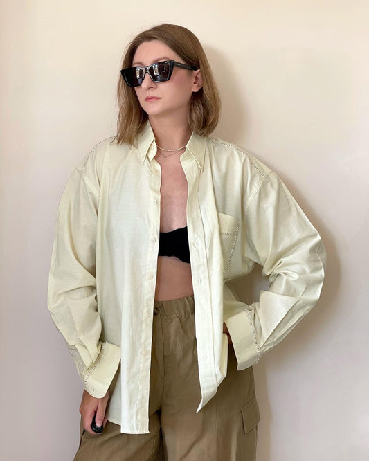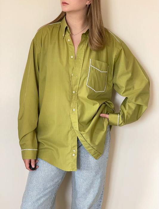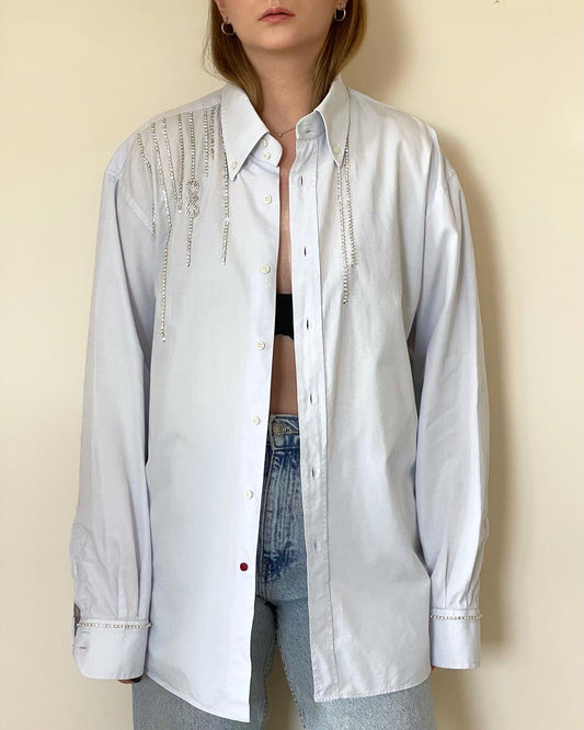 Vintage oversized men's shirt hand-decorated with rhinestone crystal chain