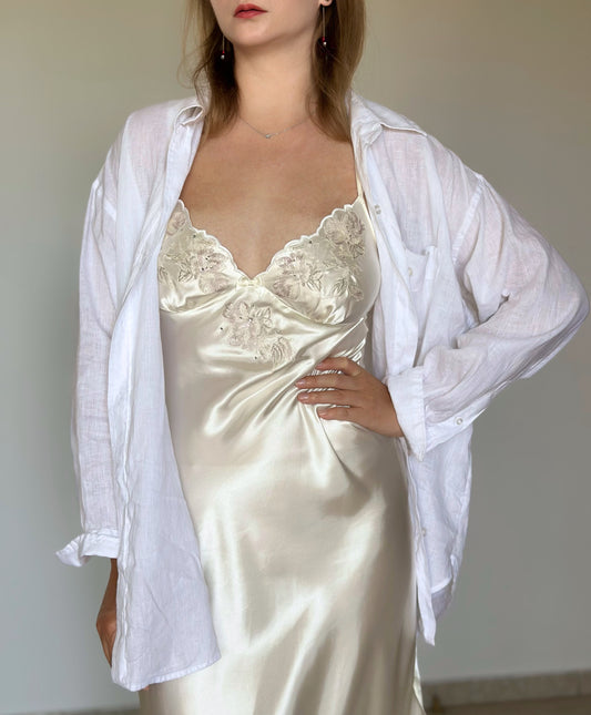 Amazing long night gown/slip dress with floral embroidery