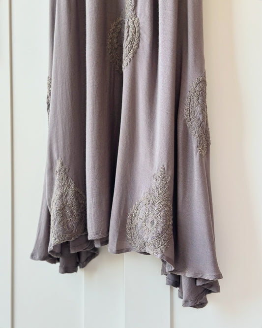 Beautiful long grey dress with embroidery
