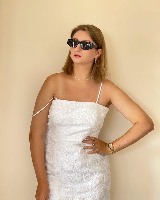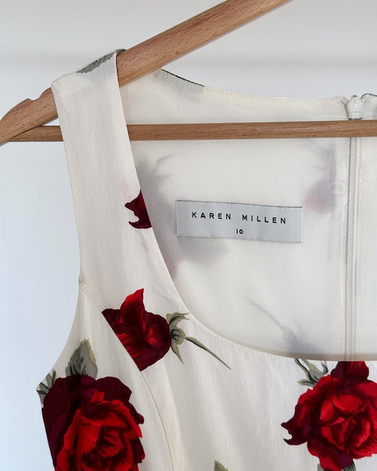 Amazing white fitted dress by CALVIN KLEIN with rose pattern