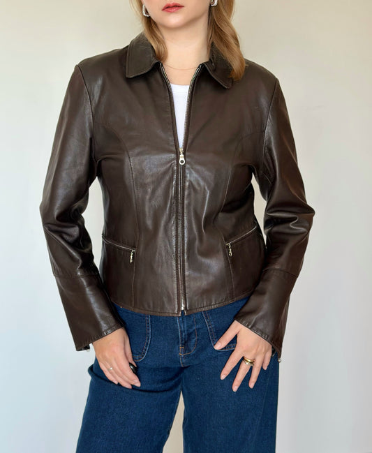 Stylish vintage 100% leather brown jacket