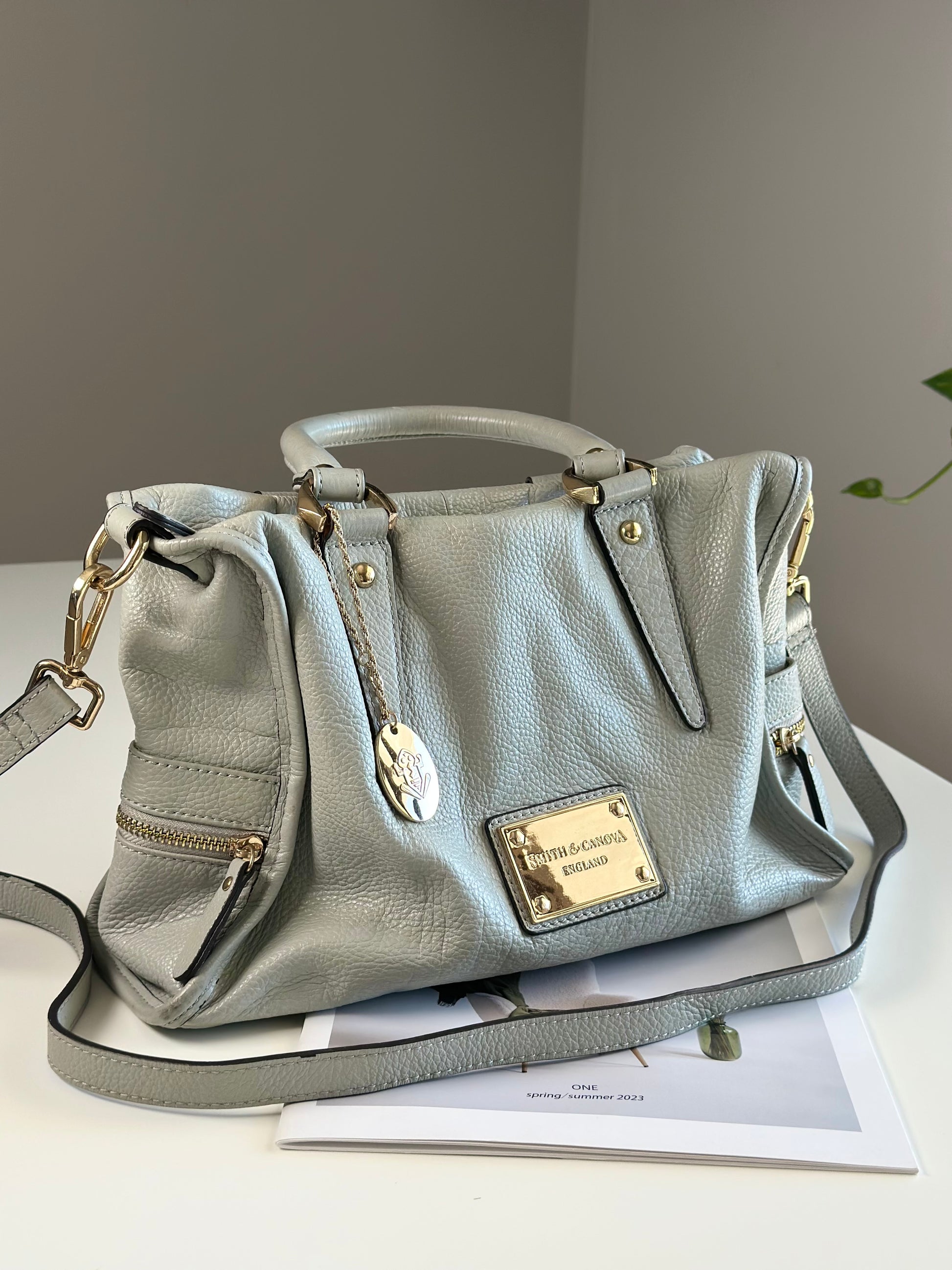 Elegant grey leather handbag from Smith & Canova (England)