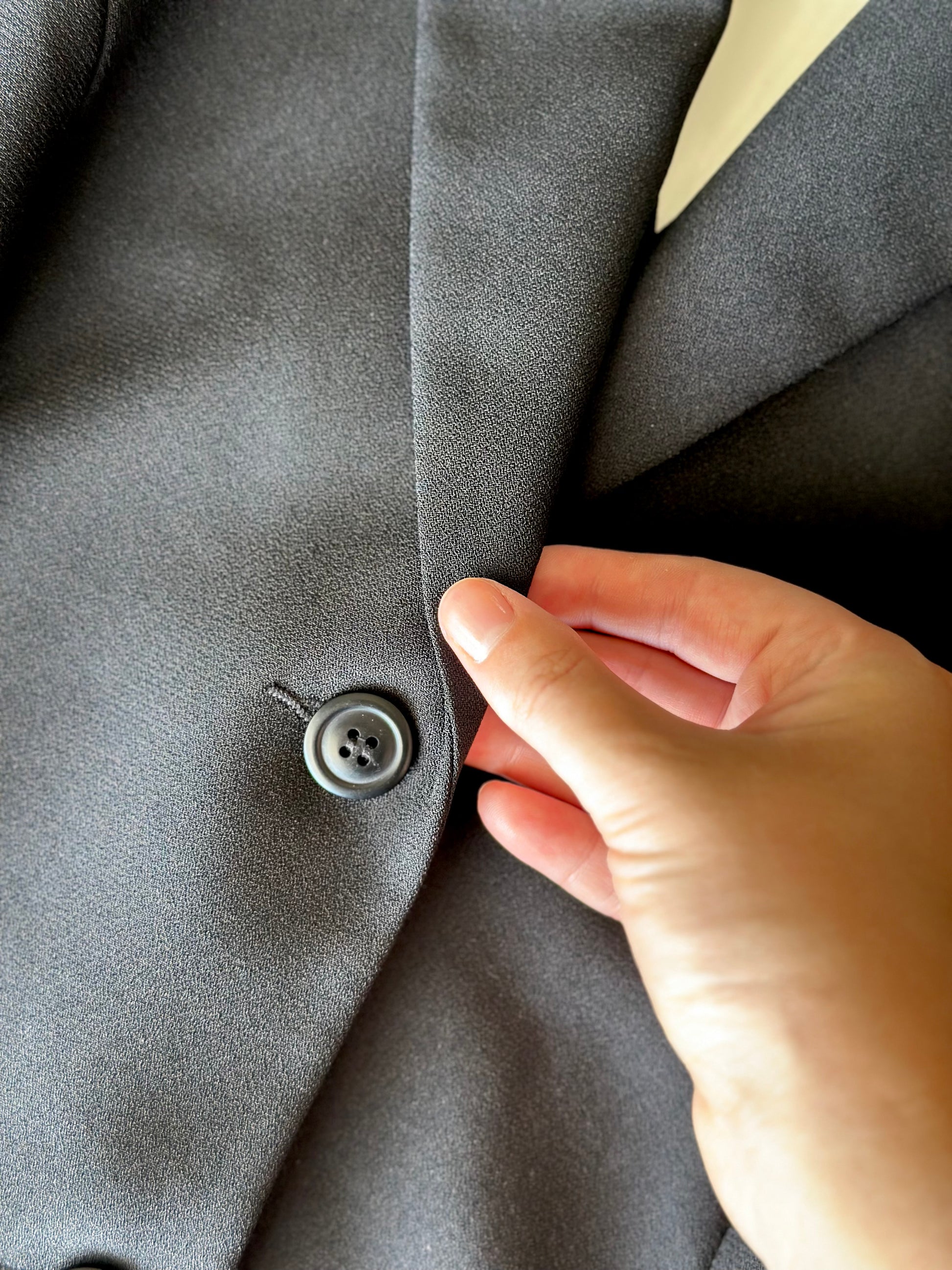 Striking vintage black blazer that balances classic tailoring with bold design. The sharp, minimalist front exudes sophistication, while the back reveals a daring V-shaped cutout with functional buttons for a dramatic twist. A unique and beautifully crafted statement piece.
